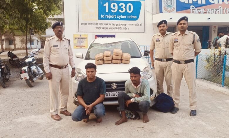 सक्ती- 9 किलो से ज्यादा गांजा के साथ दो तस्कर गिरफ्तार, कार समेत लाखों की सामग्री जब्त